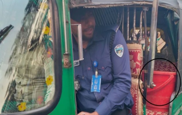 বড় জেরিক্যান নিয়ে কুমিল্লার আলেখারচর বিশ্বরোড থেকে নিউ একতা সার্ভিস নামক বাসে ওঠেন।